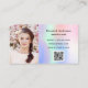 Back: Personalise and add your photo, name, title, phone number, mail, website adsress, qr code to your website. Purple letters.