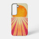 A glowing sun over pink rays—soft warmth meets retro tranquillity.