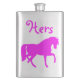 The Pink Horse "Hers" flask features a pink horse, with the text "Hers." Customise the text as desired. Makes a great gift for birthdays, Christmas and other special occasions. Be sure to check out the matching Blue Horse "His" flask!