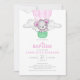 Pink Hot Air Balloon Bear Girl Baptism Invitation