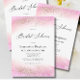 Created with exquisite attention to detail, each invitation features a captivating blend of delicate pink tones and dazzling gold sparkles, creating a mesmerising border that exudes sophistication and glamour. The subtle interplay of colours adds a touch of whimsy and charm, setting the stage for a joyous celebration with cherished friends and family.