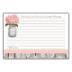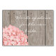 Pretty pink hydrangea mason jar bridal shower words of advice cards with a wooden fence, antique damask pattern lace background and stitched pink ribbon look design. This words of wisdom for a happy marriage card is perfect for a rustic chic, country, farmhouse, garden party or barnyard style bridal shower party. The mason jar can be personalised with the initials of the bride and groom. Designed by Chrissy H. Studios, LLC. All rights reserved.