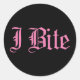 A warning not to get too close... these t-shirts and other items have the phrase "I Bite" in sweet pink lettering.