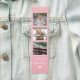 Bookmark for grandma in pink and printed with three photos of grandma's grandchild (or grandchildren). I love you grandma is written at the bottom of the photo collage bookmark. The text is customisable in case you want to change the wording or what grandma is called. Beneath: a white heart. Perfect gift for a book loving grandmother!