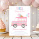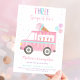 This cute invitation features a hand painted watercolor ice cream truck with ice cream treats and balloons in pastel colours.