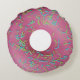 A mouth-watering donut, full of delicious sweetness, covered in pink icing and lots of colourful sprinkles