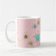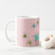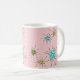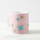 This Pink Iconic Atomic Starbursts Mug pattern features iconic atomic starbursts. That’s right! The old school, First Lady Pink coloured background with gold speckles is the perfect backdrop for the vibrant turquoise, soothing celery, and kitschy pear green coloured circles. The spots of colour are sporadically placed in various sizes with overlaying black V shaped lines to form the mod sputnik starbursts. Styled after a 1950’s dish pattern, this retro inspired design has everything you need to be truly mid century modern.
