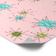 This Pink Iconic Atomic Starbursts Poster pattern features iconic atomic starbursts. That’s right! The old school, First Lady Pink coloured background with gold speckles is the perfect backdrop for the vibrant turquoise, soothing celery, and kitschy pear green coloured circles. The spots of colour are sporadically placed in various sizes with overlaying black V shaped lines to form the mod sputnik starbursts. Styled after a 1950’s dish pattern, this retro inspired design has everything you need to be truly mid century modern.
