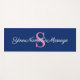 An elegant royal blue (traditional) fitness mat with platinum colour script name/message and a pink monogram initial. The back is white. Easily change the text using the Template provided. Dimensions: 72" x 24", and a comfy 0.25" thick. Lightweight: approximately 3lbs. See "About This Product" at side for more information.