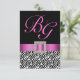 Pink Initials Zebra Stripes Wedding RSVP Card