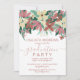 This elegant and modern graduation party invitation is perfect for a classy and stylish event. It features a terracotta, ivory yellow, mauve-pink, moss green, and forest green flowers and leaves bouquet illustration on top of a simple white background on the front and a dusty pink background on the back with matching delicate handwritten typography. It's a pretty, country, sweet, and beautiful design; perfect for any formal, outdoor, or even casual event.