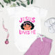 This sweet and playful design features the words "Jesus Loves Me" in soft pink lettering, paired with a cheeky baby girl illustration full of personality and charm. Radiating warmth, love, and faith, it adds a joyful touch of spirituality in a fun and heartfelt style.