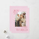 Pink Joy to the World Modern Type Christmas Photo Holiday Card