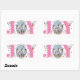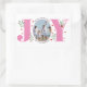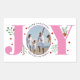 This rectangular sticker is a perfect addition to your Christmas gifts. It features the word "JOY" in pink with red berries and greenery, but with a unique twist - your photo replaces the letter "O". The sticker also includes the text "Merry Christmas" above your photo and your family name below it. Spread some pink joy this holiday season with this personalised sticker.