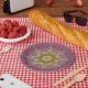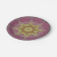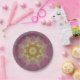 This paper plate features a pink and yellow flower with a kaleidoscope twist. Soft and delicate and appropriate for formal and casual occasions.