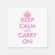 Pink Keep calm and carry on | Vintage paper napkins. Make your own keep calm party napkins. Personalised keep calm and your text paper napkins. Design your own funny keep calm and carry on parody. Vintage Keepcalm theme design with crown and white letters. Customisable typography template with custom background colour. Great for weddings, birthdays, dinner party and BBQ's.