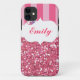 Get this cute pink custom glitter look "Keep Calm and Sparkle on" Iphone 5 case. Perfect to add a touch of sparkle to your IPhone! lovely girly gift with glitter effect , pink stripes and hearts.. Personalise with your name!