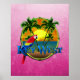 Key West Florida, the southernmost point in the United States. Beach sunset painting with palm trees, round bamboo frame, and a colourful parrot.