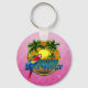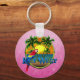 Key West Florida, the southernmost point in the United States. Beach sunset painting with palm trees, round bamboo frame, and a colourful parrot.