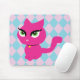 This cute cat design features an illustration of an adorable pink kitty cat who is just a little bit peeved but she's still so cute with her large green eyes and little collar!