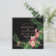 Pink Lady Slipper Orchid Wreath on Black Wedding Invitation