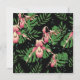 Illustrated pink and pale yellow lady slipper orchids in a wreath shape with bright green leaves for an evening garden wedding or tropical wedding.