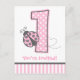 Cute 1st birthday design with a pink and grey ladybug flying over a big number 1 filled with a pink and white polka dot pattern. Add your own custom text. PinkInkArt original!