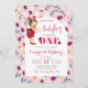 Pink Ladybug Blonde Girl First Birthday Invitation
