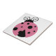 Cute pink ladybug with black spots and curly antennae. Customise by changing background colour.