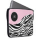 Pink laptop monogram sleeves with cool zebra skin pattern that protects your portable electronics such as your netbook, laptop, or tablet in style. Wild and fun, this is a great design for ladies or teenagers.