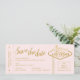Wedding in Fabulous Las Vegas Sign on a gold and blush pink boarding pass plane ticket save the date announcement. These creative and fun destination wedding save the dates for Vegas Weddings always surprise guests when they receive them in the mail!