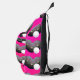 Pictured On Hot Pink Are Three Black Lawn Bowls With Pink Centres And Jack In A Repeated Pattern.