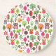 pink leaf tree retro owl pattern coaster