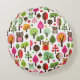 pink leaf tree retro owl pattern round cushion