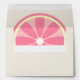 An off white envelope featuring an illustration of a pink lemon slice on inside.