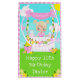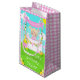 This cute and whimsical birthday gift bag can be personalised with a name or title such as daughter, granddaughter, niece, friend etc. It features a blonde hair girl with fair skin at a pink lemonade stand which is decorated with flowers and bunting. In the background is a blue sky, sunshine and butterflies. This is perfect for a summer birthday party.