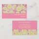 Fruity, fizzy, sweet and sour... slices of lemon, bubbles and stars float in pink lemonade. Business card with a pink, yellow, orange and white customisable design for you to personalise with your own text, images and ideas. Image created from an original coloured pencil and ink drawing by Jess Perry.