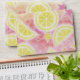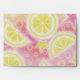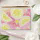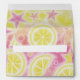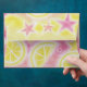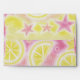 Fruity, fizzy, sweet and sour... slices of lemon, bubbles and stars float in pink lemonade. Envelope with a pink, yellow, orange and white customisable design for you to personalise with your own text, images and ideas. Image created from an original coloured pencil and ink drawing by Jess Perry