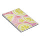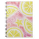 Fruity, fizzy, sweet and sour... slices of lemon, bubbles and stars float in pink lemonade. Notebook with a pink, yellow, orange and white customisable design for you to personalise with your own text, images and ideas. Image created from an original coloured pencil and ink drawing by Jess Perry.
