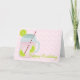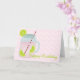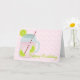 A birthday card featuring an illustration of a glass of pink lemonade with limes. Background is pink chevron.