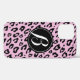 Pink leopard print iPhone 12 case with monogram. Cute girly design with exotic animal print. Customisable background colour behind the wild cat spots pattern. Cool Birthday or Christmas gift idea for women and teen girls. Personalised name monogram initial letter with elegant typography. Customise this stylish present for yourself, mum, mother, sister, aunt, wife, friend etc.