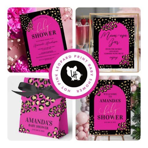 Celebrate with a Mum-osa bar and display this pink and leopard print mum-osa bar sign. With a beautiful pink, gold and black colour palette, this sign is perfect for a baby girl shower. The playful and elegant design will capture the attention of your guests and set the tone for a festive celebration.
