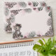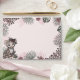 This Pink Leopard Print Safari Envelope features a soft blush pink exterior with a charming hand-drawn leopard cub illustration on the front, surrounded by pink hibiscus flowers and jungle leaves for a sweet tropical touch. The top back flap includes a customizable name and return address in coordinating pink text, adding a polished and cohesive finish.