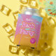 A cute pink theme design with "Bach Party" in a retro font and "Come On Let's Go Party" in the lower right. Pink palm trees art is in front of a cheerful blue and yellow sky inspired by a California beach. The name of the bachelorette is above in a script font.