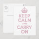 Pink Lettered Keep Calm and Carry On Postcard