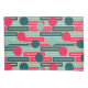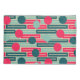 This pillowcase has a mid-century modern design of repeating rectangles in pink, teal, and blue with circles layered on top.