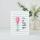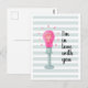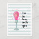 Valentine's day postcard with light bulb and stripes illustration, and text "I'm in love with you". Pastel mint and pink colors.