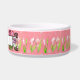 Pink Lilies Pink White Green Add Your Pet's Name Pet Bowl features pretty pink calla lilies with green leaves on a pink textured-look background, In the front and centre of this pretty floral pet bowl is a white scrolling vintage banner with various shades of pink flowers and green leaves framing it's edges. Inside the banner is a place for you to add your pet's name for a personalised pet bowl, which comes in two sizes. You can customise this food or water bowl further if you like by changing the images and adding images and text of your own. Don't forget to change the pet's name we've placed on the bowl, unless your pet is named Lily. See more DIY decor for the home, office, school, pets and more in our store at zazzle.com/DIYDecor, where everything is customisable.