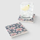 The coasters are gorgeous, a quality feel and heavy weight. They look like a precious archeological find. A rustic stone juxtaposed with a modern floral black and white print. I like the way the print goes slightly imperfect on the cut stone edges giving them a kind-of natural beauty.