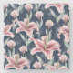 Pink Lilly Flower Seamless Pattern. Stone Coaster
